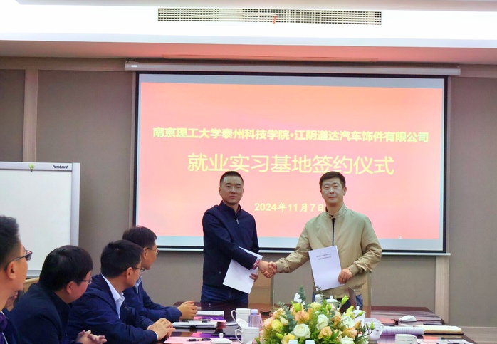 會(huì)議期間,學(xué)校與江陰海達(dá)橡塑股份有限公司、江陰道達(dá)汽車(chē)飾件有限公司簽訂了就業(yè)實(shí)習(xí)基地協(xié)議書(shū),并舉行了實(shí)習(xí)基地授牌儀式。