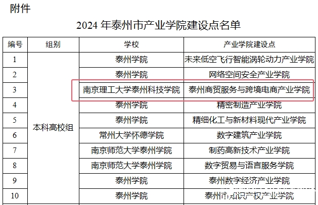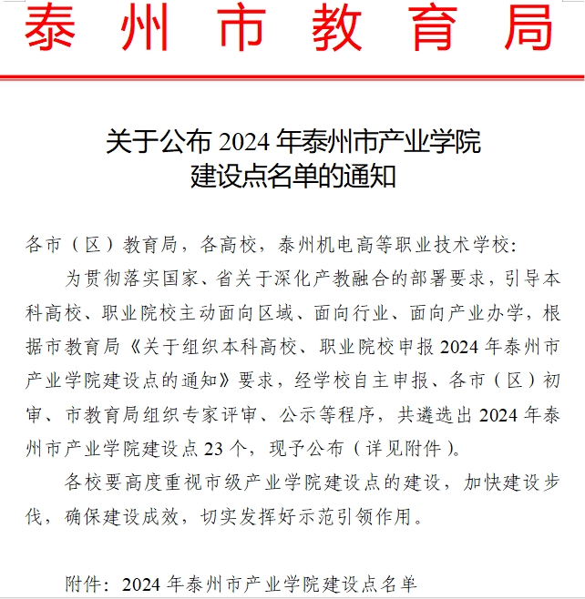 近日,泰州市教育局印發(fā)《關(guān)于公布2024年泰州市產(chǎn)業(yè)學(xué)院建設(shè)點(diǎn)名單的通知》,我校商學(xué)院牽頭申報(bào)的泰州商貿(mào)服務(wù)與跨境電商產(chǎn)業(yè)學(xué)院成功入選2024年泰州市產(chǎn)業(yè)學(xué)院建設(shè)點(diǎn)。